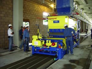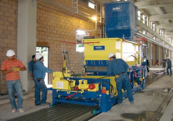 - يتم إنتاج بلاطات مجوفة القلب بارتفاعات مختلفة بمدخل الآلة نفسه من خلال استبدال أنابيب القلب واللوحات الجانبية فقط