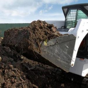 Similar in design to a C/I bucket, but with slightly less breakout force. Has a longer bottom to provide excellent cutting edge visibility and increased capacity. This is the most popular Bobcat bucket