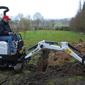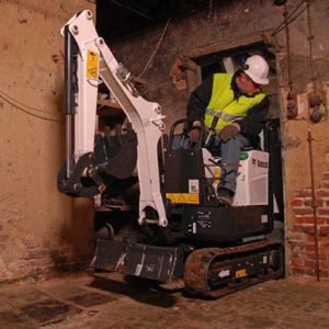 The E08 is an easy to transport micro-excavator ideal to go through most standard door sizes.
