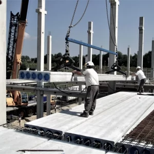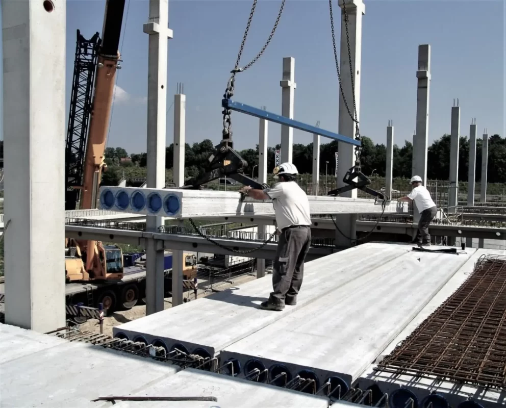 Precast concrete construction is cost-efficient. Elements of the flooring / ceiling system are efficiently prefabricated in the factory in an industrial process, complete with built-in parts and recesses, and quickly assembled on the construction site with minimal effort.